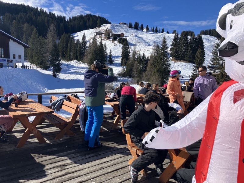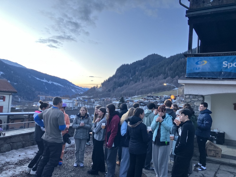 Am Samstag ging es früh weiter ins größte Skigebiet Davos‘, Parsenn. Jetzt zeigte sich auch die Sonne und sorgte für perfekte Bedingungen: blaues Himmelspanorama, griffiger Schnee und Abfahrten, die wir auf Ski und Snowboard voll ausnutzten. Vor dem Abendessen feierten wir eine kleine Punschparty – mit Musik, warmem Punsch und Sonnenuntergang. Diese besondere Stimmung leitete einen Abend ein, der geprägt war von guter Laune, viel Lachen und einer tollen Gemeinschaft.