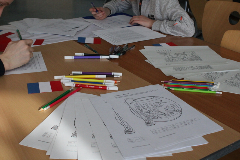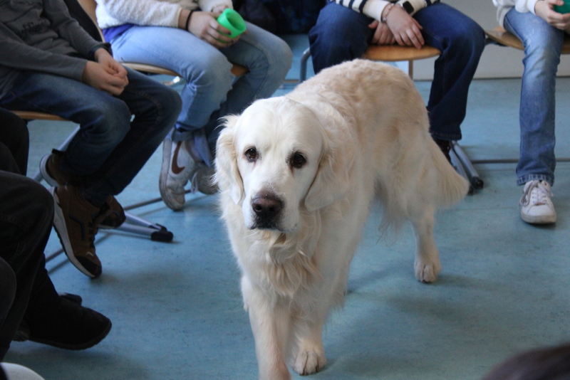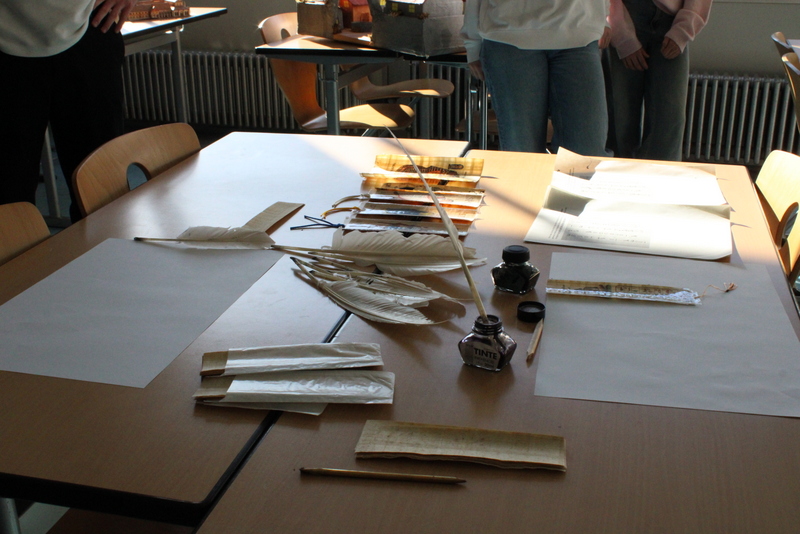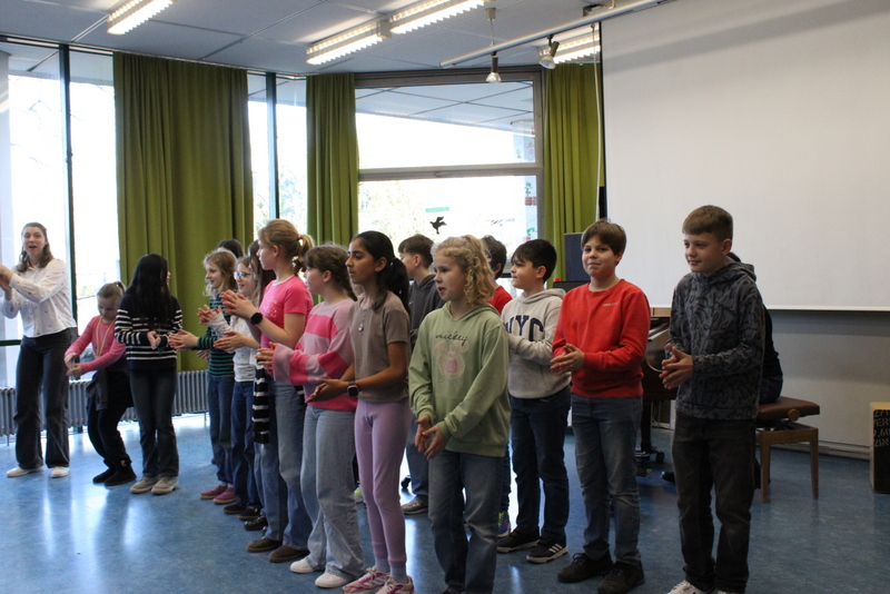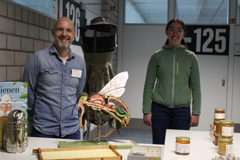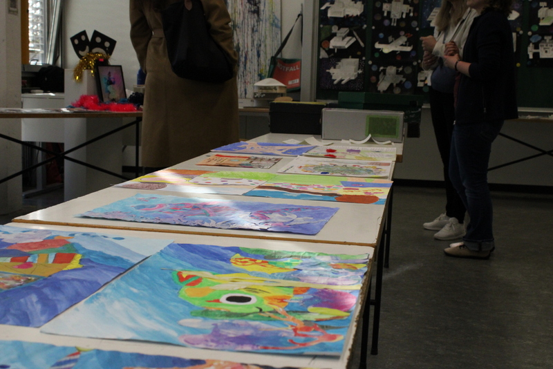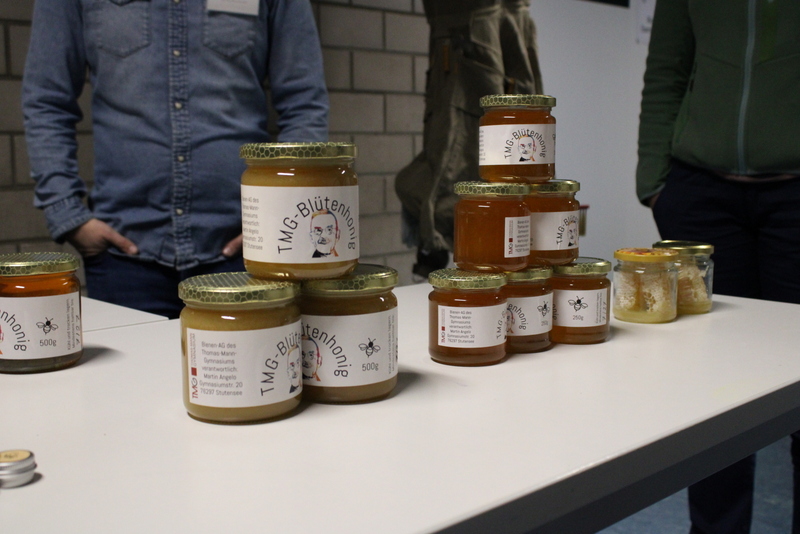 Der Unterstufenchor zeigte sein Können, die Fachschaften Geschichte und Latein zeigten nicht nur von Schülern und Schülerinnen gebaute Modelle, man konnte auch in die Vergangenheit eintauchen und mit Feder und Tinte schreiben, ganz wie in alten Zeiten. Die Naturwissenschaften zeigten viele Modelle und deren Funktionsweise. Man konnte einen Blick in die Sternwarte hoch oben auf dem Dach des TMG werfen. Die Eisenbahn-AG hatte Teile ihrer beeindruckenden Anlage aufgebaut und ließ ihre Züge durch alte und neue Streckenabschnitte rauschen. Die noch recht junge Bienen-AG verkaufte den selbst gewonnen Honig und beantwortete Fragen rund um die Biene. Zu diesem Zweck diente auch das Modell einer überdimensionierte Riesenbiene. Schulhund James war auch am Start: Er ließ sich willig streicheln und mit kleinen Leckerchen füttern. In den Räumen der Bildenden Kunst konnte man nicht nur Werke von Schülern und Schülerinnen bewundern, man konnte auch selbst tätig werden und mit Hilfe von Farben und Salatschleudern kreativ werden, eine Aktion, die für viel Spaß und Heiterkeit sorgte.