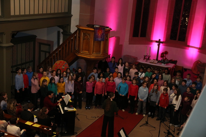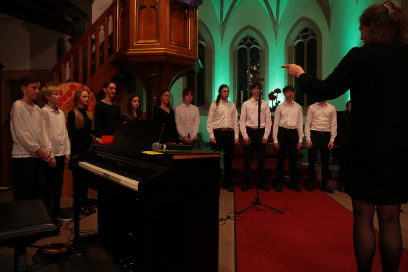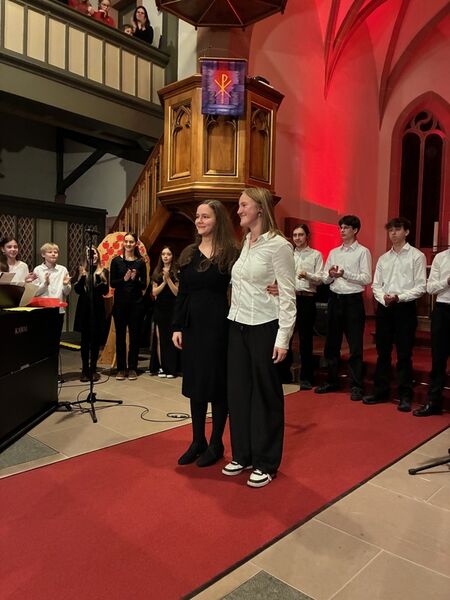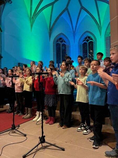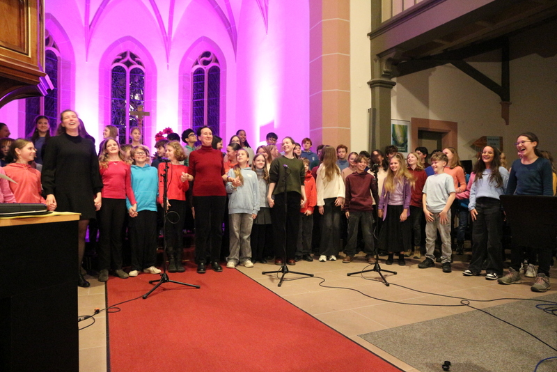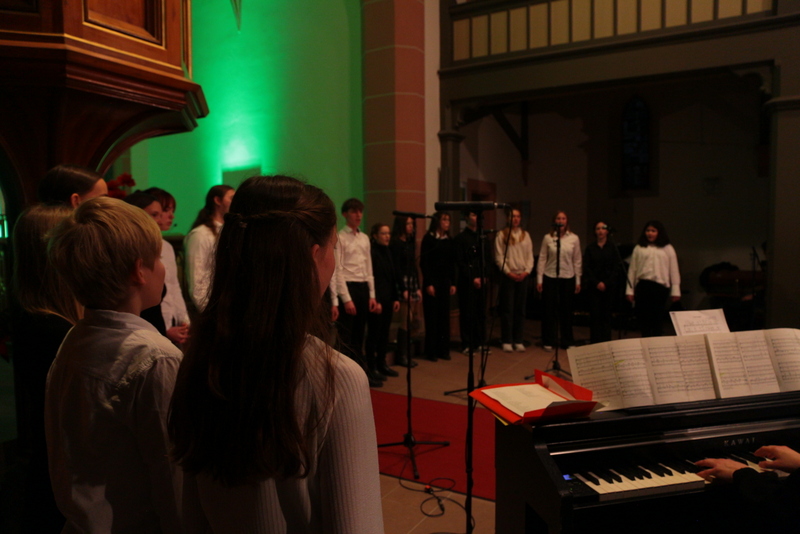 Gemeinsam fand der Abend seinen feierlichen Abschluss im traditionsreichen „O du fröhliche“, das den Kirchenraum in einen warmen gemeinsamen Klang hüllte.
