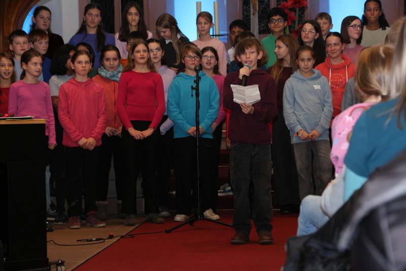 Der 6er-Chor präsentierte sich anschließend klanglich gereift und souverän. Mit warmen Tönen in „Ubi Caritas“ und rhythmischer Lebendigkeit in „Keep Your Lamps“ zeigten die Schülerinnen und Schüler ein feines Gespür für musikalische Gestaltung. Die kurzen Moderationen gaben einen sympathischen Einblick in die Stücke, ohne den musikalischen Fluss zu unterbrechen. Beide Kinderchöre profitieren von der Zusammenarbeit mit dem ChorMosaik – einer Kooperation von Musikhochschule, Rotaryclub und TMG – und von den beiden schuleigenen MusikmentorInnen.