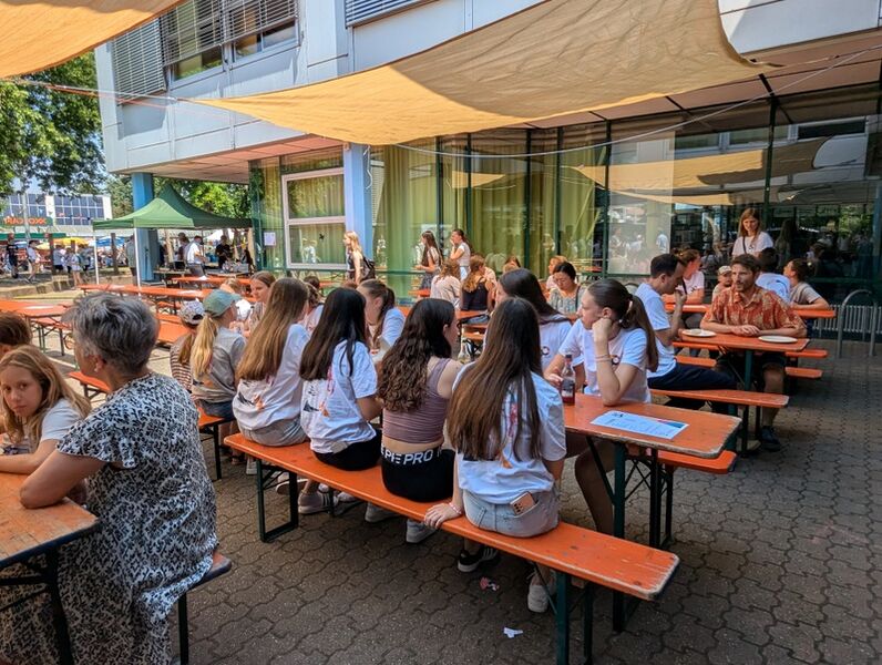 Das große Schulfest für alle begann mit dem Mittagessen auf dem Schulhof und erstreckte sich mit abwechslungsreichen Aktivitäten über das ganze Schulhaus. Es wurden die vielfältigen Ergebnisse der unterschiedlichen Projekte der Projektwoche vorgestellt und verschiedene AG gaben Einblicke in ihre Arbeit. Die Anlage der Eisenbahn-AG fand wie immer viele Bewunderer, aber auch das Bühnenprogramm mit verschiedenen musikalischen und schauspielerischen Beiträgen konnte sich sehen lassen. An dieser Stelle sollten die zahlreichen Bilder in der Bildergalerie für sich sprechen. Trotz der schier unerträglichen Temperaturen blieb es bis zum offiziellen Ende voll.