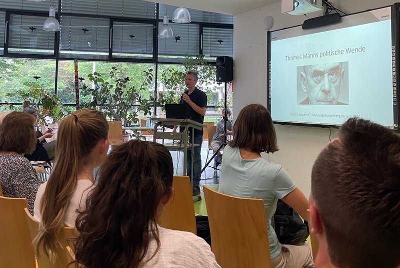 Und auch, wenn es einem sonst nicht so leichtfällt, sich mit unserem etwas sperrigen Schulpatron zu identifizieren, kann man nach dem Vortrag von Frau Dr. Albrecht doch ein wenig stolz sein auf unseren Namensgeber, der den Mut hatte, sich zu wandeln, den Mut hatte, seinen Irrtum aus der Zeit des Ersten Weltkriegs einzusehen, dann einen politischen Reifeprozess vollzog und zu einem „Wanderredner der Demokratie“ wurde.