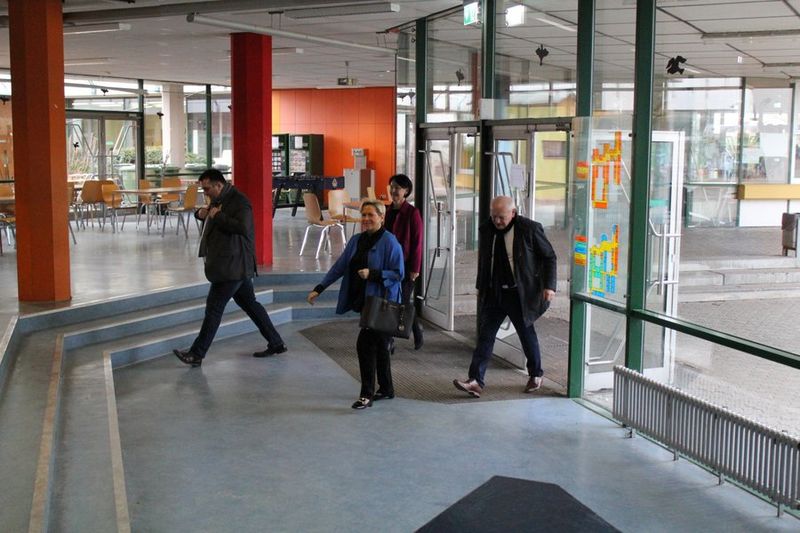 In großer Begleitung trat die Frau Ministerin ihren Rundgang durch das Schulzentrum an: Frau OB Becker und Herrn BM Geißler, Herr Ansgar Mayr als Initiator, Fraktionsvorsitzender der CDU im Gemeinderat, Herr Landtagsabgeordneter Kößler, die Gemeinderätin Nicole Lacroix und der Vorsitzende des CDU-Ortsverbandes Blankenloch-Büchig, Herr Alexander Scheidle. Von der Presse: Frau Lother, BNN, Vanessa Schmidt, MeinStutensee und Herr Lang, Öffentlichkeitsarbeit.