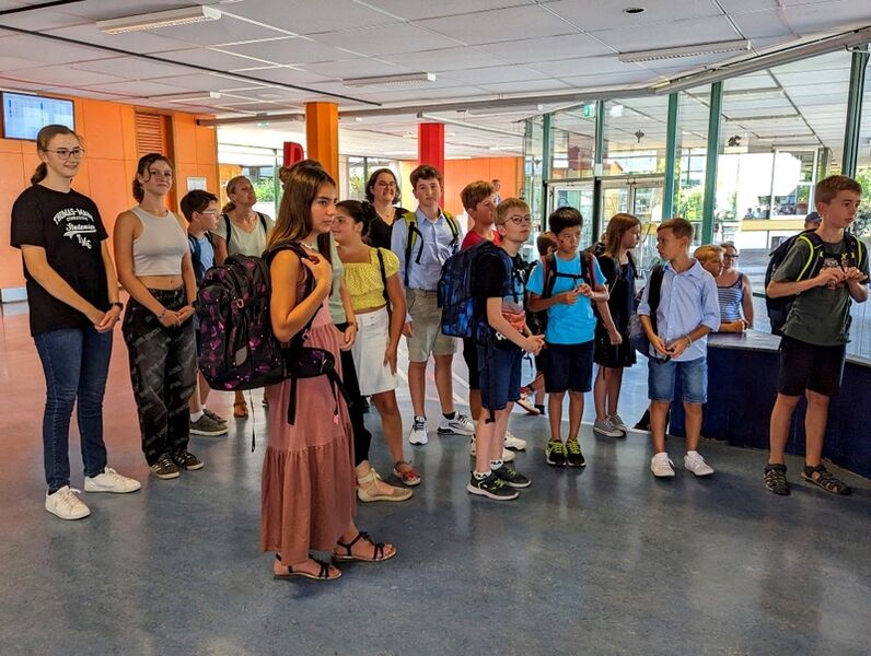 Inzwischen ist Mittwoch und man merkt so richtig, die 5er erobern sich das TMG: Überall sind sie unterwegs! Mit Aufgaben und Stiften ausgerüstet laufen sie, meist in kleinen Gruppen, durch die Gänge. Sie stellen Fragen, schauen hinter jede Säule, machen Notizen, sausen um Ecken – lernen das große Schulhaus des TMG mit seinen langen Gängen und viele Menschen, die dort arbeiten, kennen.