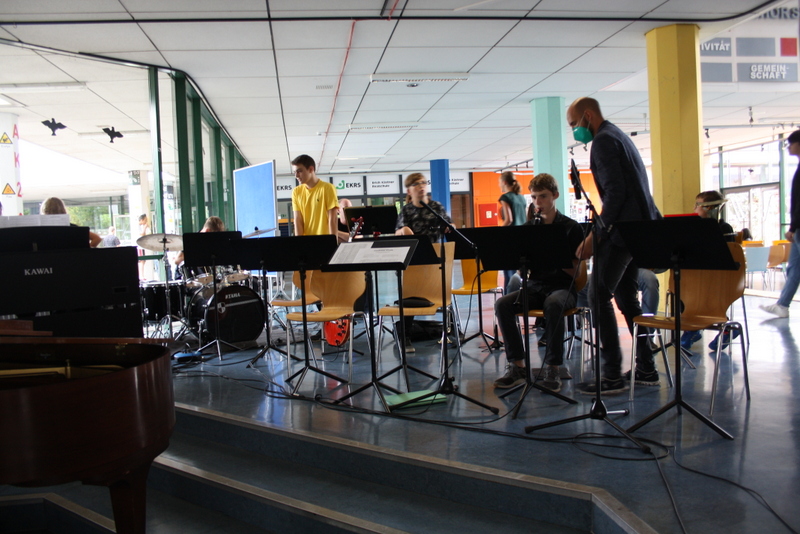 Und heute Nachmittag war es so weit: Während die Technik noch Mikrofone und anderes richtete, spielten sich die Musiker ein und die Stuhlreihen füllten sich schnell. Spannung und Aufregung lag in der Luft! Dann trat Herr Beck ans Mikrofon und begrüßte Eltern und Schüler, das Orchester spielte und da war er - der Moment auf den alle warteten: Herr Beck rief die Namen der Kinder auf und sagte ihnen, in welche Klasse sie jeweils kamen. Die Kinder sammelten sich bei ihren Klassenlehrerinnen, als alle Kinder „verteilt“ waren, wurde noch ein Klassenfoto auf der Treppe gemacht und dann ging es in die Klassenzimmer. Während die Kinder ihr Klassenzimmer kennenlernten und einen ersten Eindruck von Ihrer Klassenlehrerin und ihren Mitschülern und Mitschülerinnen bekamen, wurden die Eltern von Herrn Beck mit wichtigen Informationen „versorgt“ und durften anschließend bei Kaffee und Kuchen, organisiert von Eltern und dem Förderverein, auf ihre Kinder warten. Bei strahlendem Sonnenschein gab es auf dem Schulhof Gelegenheit zu vielen Begegnungen und Gesprächen.