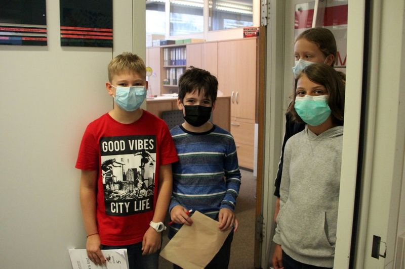 Und Antworten! Überall im Schulhaus waren die 5er unterwegs und fanden eifrig Antworten! Von der anfänglichen Befangenheit war kaum noch etwas zu spüren.