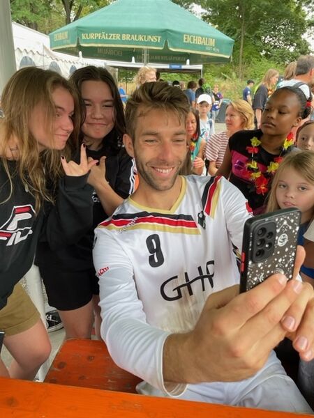 Viele von uns hatten eigentlich keine richtige Ahnung vom Faustball. Der Grund, warum wir uns auf den Weg nach Mannheim gemacht haben, war vielmehr Nick Trinemeier, ein überaus beliebter, engagierter Lehrer und geschätzter Kollege am TMG, der leider mit dem Ende dieses Schuljahrs das TMG zu unserem großen Bedauern verlässt. Mit ihm kam der Faustball ans TMG. Als aktiver Sportler und in einer AG gab er Einblicke in diese Sportart. Mit dem Besuch der WM in Mannheim bekamen wir alle eine beeindruckende Vorstellung davon, was Faustball ist.