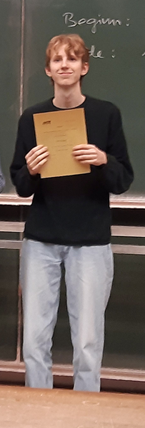 Zwischen den beiden Teilen des Teamwettbewerbs fand noch ein fakultativer Einzelwettbewerb statt: 60 min, nur Stift, Papier, Lineal. Und auch da konnten die TMG-Schüler punkten: Timo ergatterte sich mit dem 3. Platz die „Bronzemedaille“, ganz knapp dahinter Finn auf dem vierten Platz (von 116 Teilnehmern).