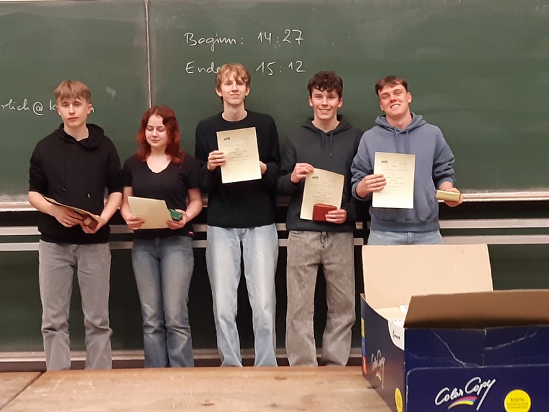 Da hat sich der „geopferte“ Samstag für Jule, Eli, Timo, Finn und Dustin aus der J2 wirklich gelohnt, neben Spaß und kostenlosem Mittagessen konnten sie die Erfolgsgeschichte des TMG beim Tag der Mathematik weiterschreiben.