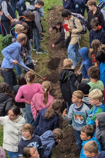 … wie zum Beispiel Briefmarken, weil sich die Schüler unter anderem gefragt haben, ob es diese in neun Jahren überhaupt noch gibt. Die Schüler dürfen also gespannt sein, was die Zukunft für sie bereithält, und werden am Ende ihrer Schulzeit erfahren, welche Wünsche und Erwartungen sich erfüllt haben. Bis sie dann ihre Briefe aus der Zeitkapsel zurückbekommen, können sie ihren Blumen beim Wachsen zusehen.
