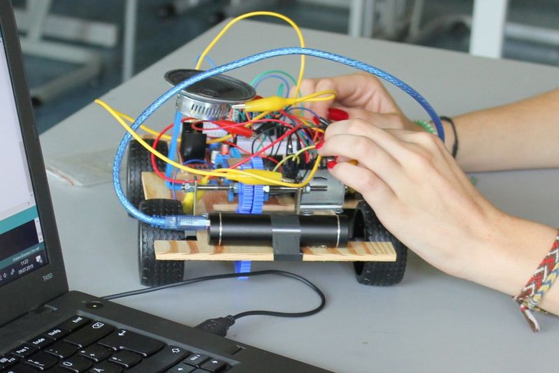 Zu Beginn werden als Grundlagen für das praktische Arbeiten in den folgenden Modulen handwerkliche Fähigkeiten wie Sägen, Bohren und Löten geschult.