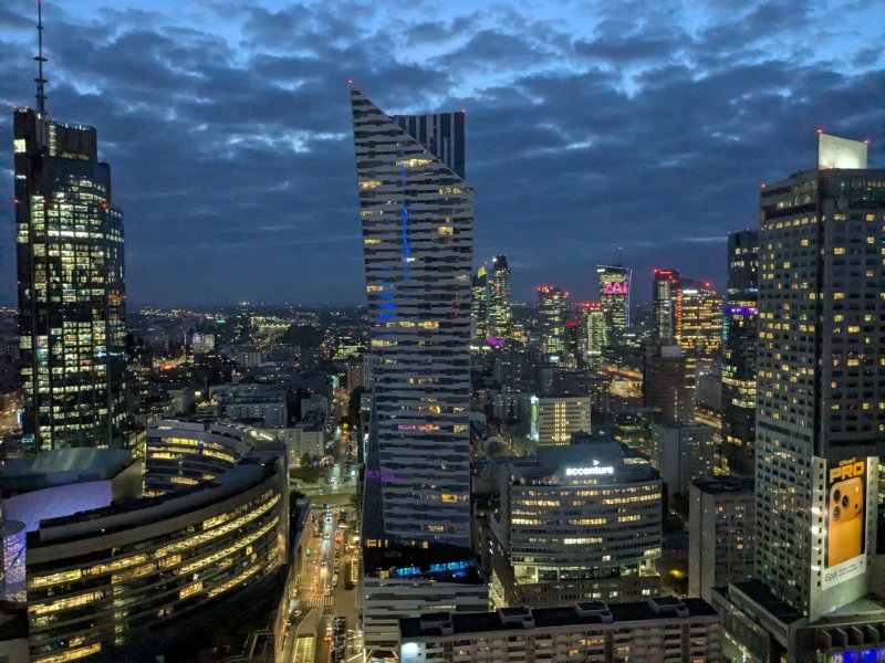 Am letzten Tag besuchten wir in Danzig den Mariendom, stiegen 408 Stufen auf den Turm und bewunderten die astronomische Uhr mit dem Figurentheater. Nach einem ausführlichen Dankeschön von Schülern an die Lehrkräfte und umgekehrt (wie Herr Aichert kommentierte: „Zwei Dumme, ein Gedanke“) machten wir uns auf den Rückweg nach Warschau, wo uns ein letzter Höhepunkt erwartete: die Aussichtsplattform des Kulturpalasts. Der Blick auf die nächtliche Skyline von Warschau war atemberaubend – ein würdiger Abschluss einer unvergesslichen Woche.