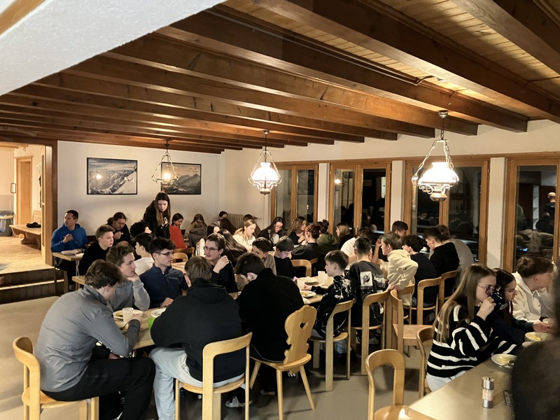 Am Samstag ging es früh weiter ins größte Skigebiet Davos‘, Parsenn. Jetzt zeigte sich auch die Sonne und sorgte für perfekte Bedingungen: blaues Himmelspanorama, griffiger Schnee und Abfahrten, die wir auf Ski und Snowboard voll ausnutzten. Vor dem Abendessen feierten wir eine kleine Punschparty – mit Musik, warmem Punsch und Sonnenuntergang. Diese besondere Stimmung leitete einen Abend ein, der geprägt war von guter Laune, viel Lachen und einer tollen Gemeinschaft.