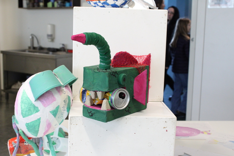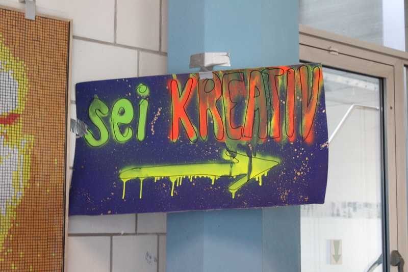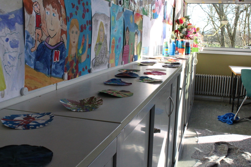 Der Unterstufenchor zeigte sein Können, die Fachschaften Geschichte und Latein zeigten nicht nur von Schülern und Schülerinnen gebaute Modelle, man konnte auch in die Vergangenheit eintauchen und mit Feder und Tinte schreiben, ganz wie in alten Zeiten. Die Naturwissenschaften zeigten viele Modelle und deren Funktionsweise. Man konnte einen Blick in die Sternwarte hoch oben auf dem Dach des TMG werfen. Die Eisenbahn-AG hatte Teile ihrer beeindruckenden Anlage aufgebaut und ließ ihre Züge durch alte und neue Streckenabschnitte rauschen. Die noch recht junge Bienen-AG verkaufte den selbst gewonnen Honig und beantwortete Fragen rund um die Biene. Zu diesem Zweck diente auch das Modell einer überdimensionierte Riesenbiene. Schulhund James war auch am Start: Er ließ sich willig streicheln und mit kleinen Leckerchen füttern. In den Räumen der Bildenden Kunst konnte man nicht nur Werke von Schülern und Schülerinnen bewundern, man konnte auch selbst tätig werden und mit Hilfe von Farben und Salatschleudern kreativ werden, eine Aktion, die für viel Spaß und Heiterkeit sorgte.